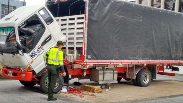 Esas sospechas llevaron a los policías a transportar el camión, al conductor y a su acompañante hasta el Comando de Policía. Dentro de dos barras de madera que hacen parte de la carrocería, ubicadas a lo largo del piso encontraron unos paquetes que aparentaban contener cocaína.